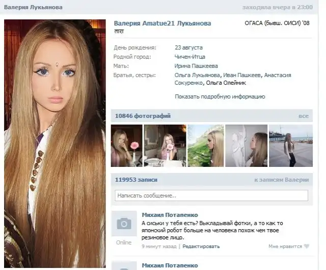 Честно сказать я захожу на ВК только чтоб поржать. Сегодня набрел вот на такой экземпляр с пластиковым лицом. Не могу понять она живая или нет? ссылкочка на страницу