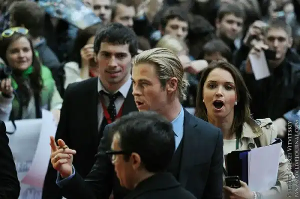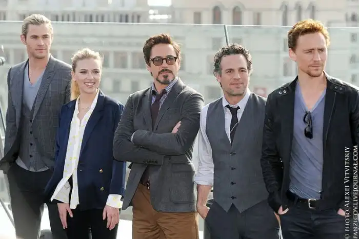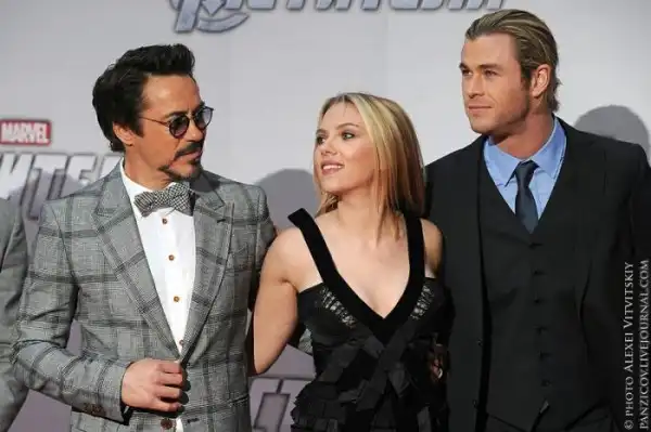 В объектив фотографов попали: Скарлетт Йоханссон, Роберт Дауни-младший, Марк Руффало, Крис Хэмсвор.
