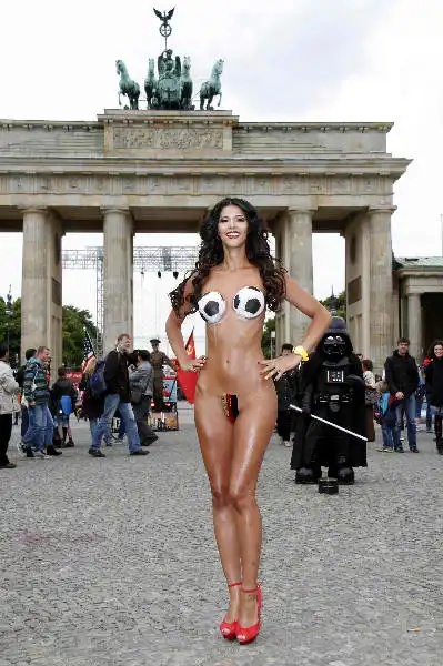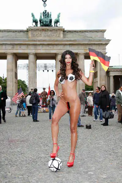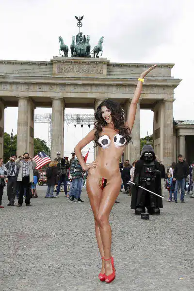 Микаэла Шафер, одна из самых сексуальных немецких топ-моделей, провела в поддержку сборной Германии на Евро-2012 акцию в своем духе.