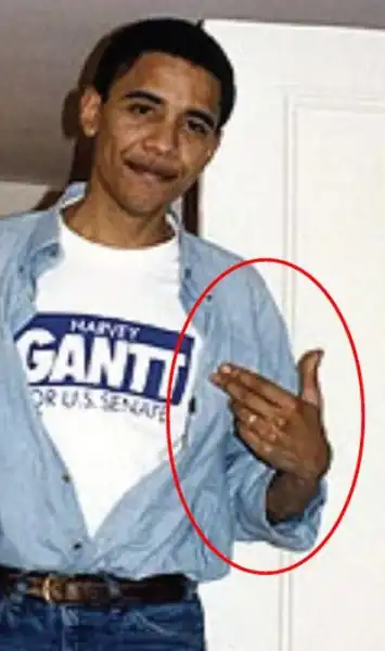 Политик изучил целый ряд ранних снимков будущего президента и вывел одну явную закономерность: за несколько лет до знакомства с будущей женой Мишель Робинсон Барак Обама постоянно носил обручальное кольцо.