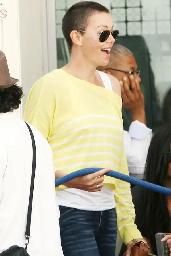 Теперь Шарлиз Терон постриглась почти на лысо и перекрасила остатки волос в темный цвет.