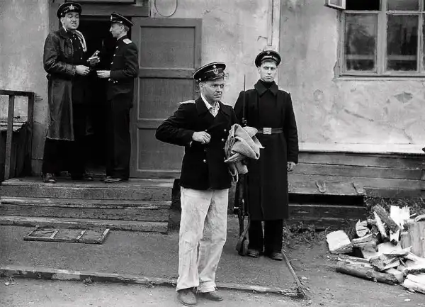 30. Освобождение пьянчужки — старшины Череповца (Леша Жарков). На съемках «Торпедоносцев». Североморск, 1983 год, режиссер Семен Аранович.