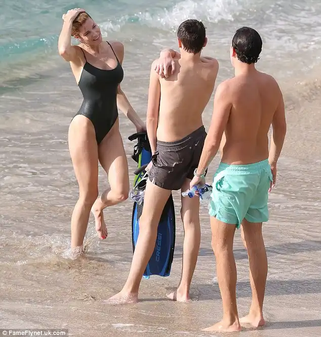 , на пляже с семьёй.