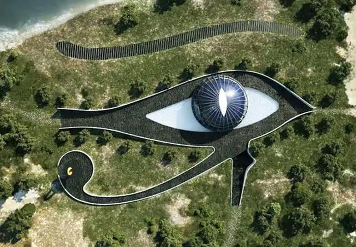можно будет заметить сооружение в виде древнего символа – глаза Гора,