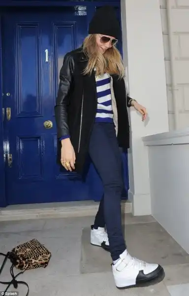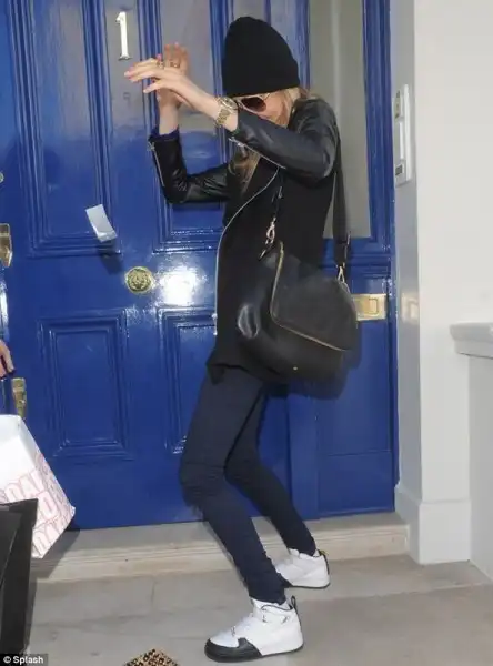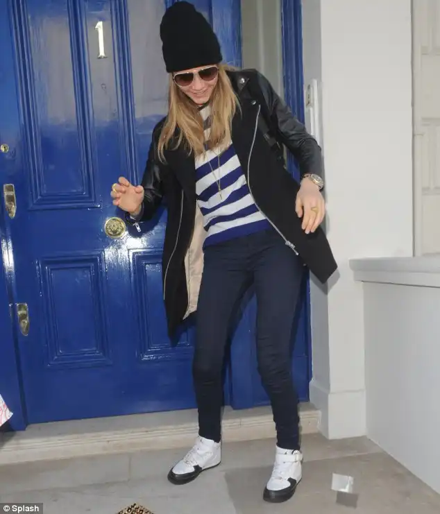 21-летняя модель Cara Delevingne,угодила в неловкую ситуацию.Фотограф поджидавший её у дома заснял скандальные фотографии. Cara,выходя из своего дома случайно обронила сумку из которой вылетел прозрачный пакетик с белым порошком.Девушка попыталась прикрыть пакетик нагой,но было поздно.