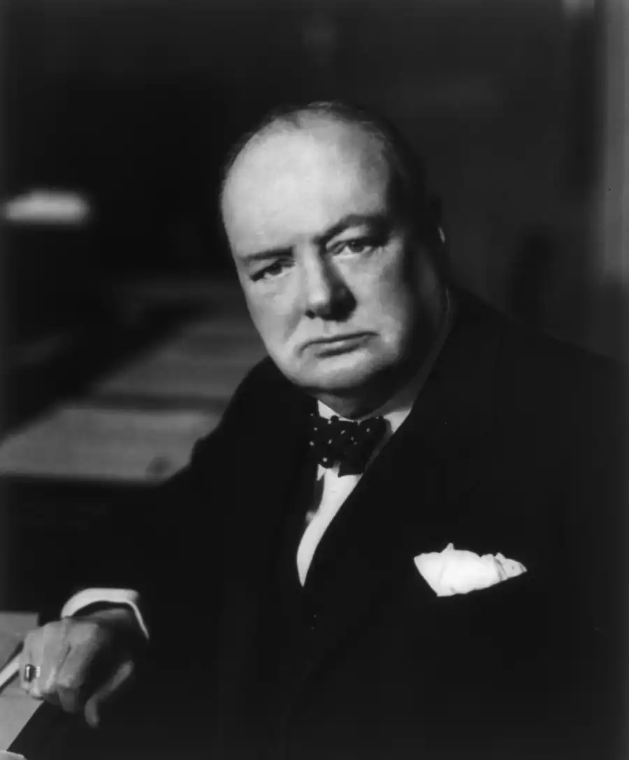 Сэр Уинстон Черчилль был премьер-министром Великобритании и первым лордом адмиралтейства во время Второй мировой войны. Он был знаменит своим остроумием и тем, что был лауреатом Нобелевской премии, а также одним из самых известных национальных лидеров в истории. Ещё он известен благодаря своей любви к сигарам и алкоголю и непритязательности в одежде.