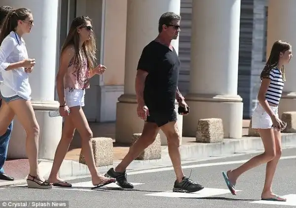 Сильвестр Сталлоне был замечен на прогулке в Монако с дочерьми Софией, Систин и Скарлет (кстати, у всех его детей, а их пятеро, имена на букву "С").