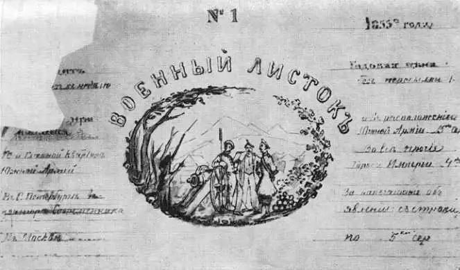 Ещё при жизни императора Николая I Толстой предполагал издавать вместе с офицерами-артиллеристами «дешёвый и популярный» журнал «Военный листок», однако проект журнала Толстому осуществить не удалось: «На проект мой Государь император всемилостивейше изволил разрешить печатать статьи наши в „Инвалиде“», — горько иронизировал Толстой по этому поводу.