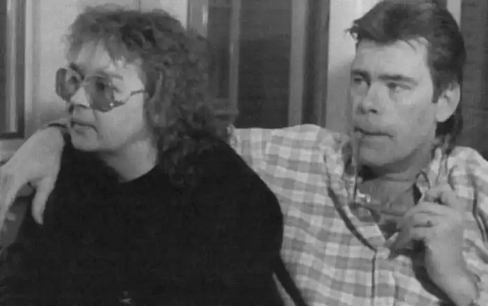 «Томминокеры» (1987) — роман-аналогия, вопль о помощи. Голоса в голове писательницы, завладевшие ее волей и невидимые инопланетные властители разума. Кинг шутил, что пил уже столько, что не помнит, как писал «Куджо» (1981) — роман о сенбернаре, который подхватил бешенство. С конца 80-х писатель не выпил ни капли алкоголя. Кэти Бейтс в роли безумной медсестры. Один из самых страшных кадров фильма «Мизери», 1990