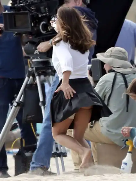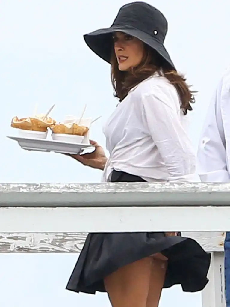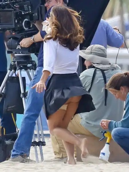 Сальма Хайек борется с ветром на съемках нового фильма "Как заниматься любовью по-английски" в Майами