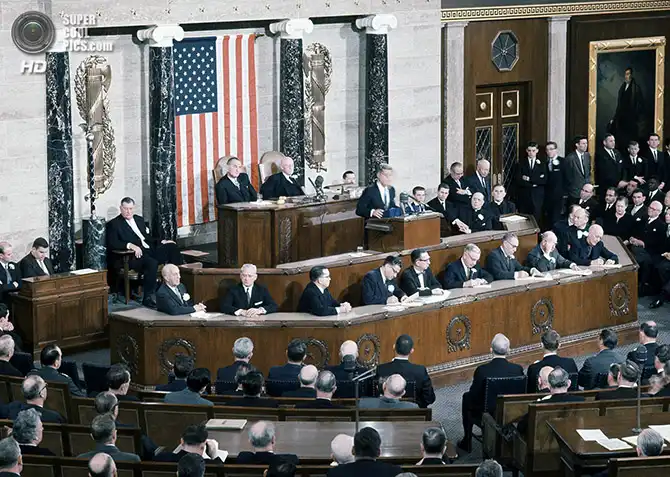 Президент Джон Ф. Кеннеди адресует свою речь Конгрессу. Вашингтон. 31 января 1961 года.