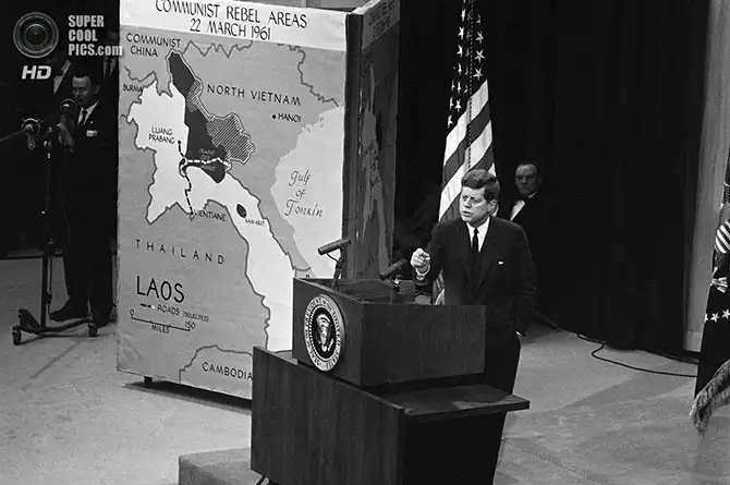 Президент Джон Ф. Кеннеди произносит речь на пресс-конференции, посвященной ситуации в Лаосе. Вашингтон. 23 марта 1961 года.