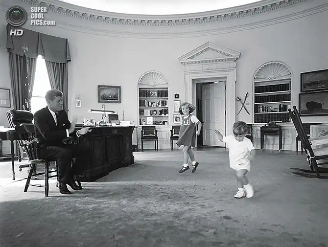 Президент Джон Ф. Кеннеди со своей трёхлетней дочерью Кэролайн в Белом доме. Вашингтон. 16 марта 1961 года.