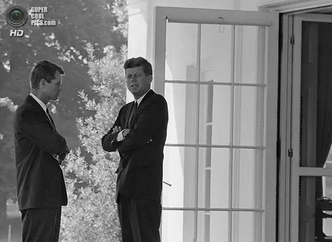 Президент Джон Ф. Кеннеди обсуждает со своим братом, генеральным прокурором Робертом Ф. Кеннеди проблему Карибского кризиса. Вашингтон. 1 октября 1962 года.