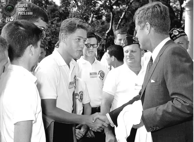 Президент Джон Ф. Кеннеди приветствует 16-летнего Билла Клинтона во время одного из мероприятий в Белом доме. Ровно через 30 лет Билл Клинтон станет 42-м президентом США. Вашингтон. 24 июля 1963 года.