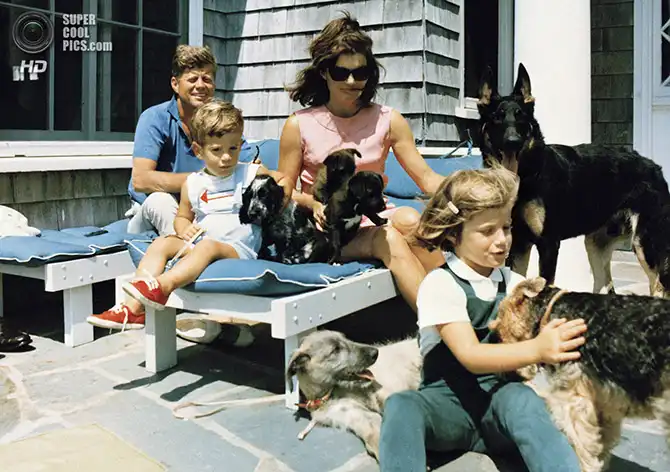 Президент Джон Ф. Кеннеди с семьей в своем втором доме в штате Массачусетс. Гианнис-Порт, Массачусетс. 14 августа 1963 года.