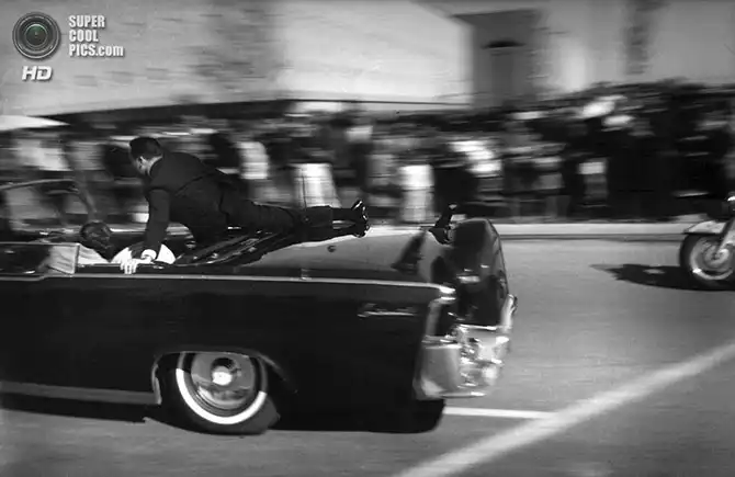 Секунды спустя после выстрела, ставшего фатальным для Джона Ф. Кеннеди.