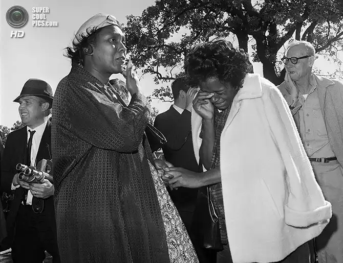 Встревоженные и плачущие люди, узнавшие о смерти президента после стрельбы. 22 ноября 1963 года.