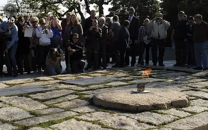 Люди у вечного огня на месте захоронения бывшего президента США Джона Ф. Кеннеди. Арлингтон, Виргиния. 29 октября 2013 года.