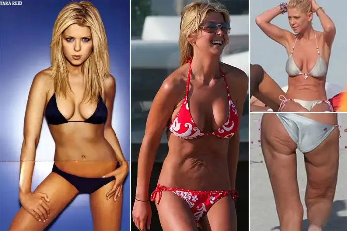 Американская актриса Тара Рейд неоднократно ложилась на стол пластических хирургов в надежде сделать свое тело идеальным. В результате, многочисленные операции по увеличению груди и липосакции сделали ее тело неузнаваемым и совершенно не привлекательным.