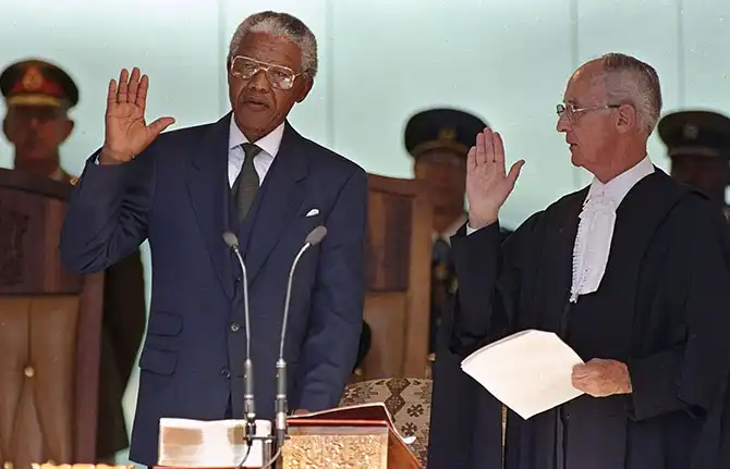 В 1994 году в Южной Африке были проведены первые общенациональные выборы с участием африканского большинства, и Нельсон Мандела стал первым в истории чернокожим президентом ЮАР.