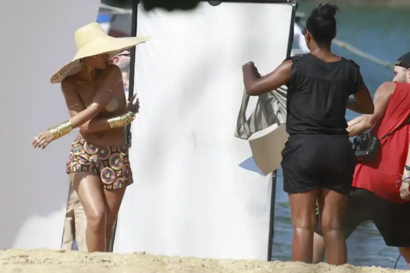 Рианна посветила грудью во время фотосессии