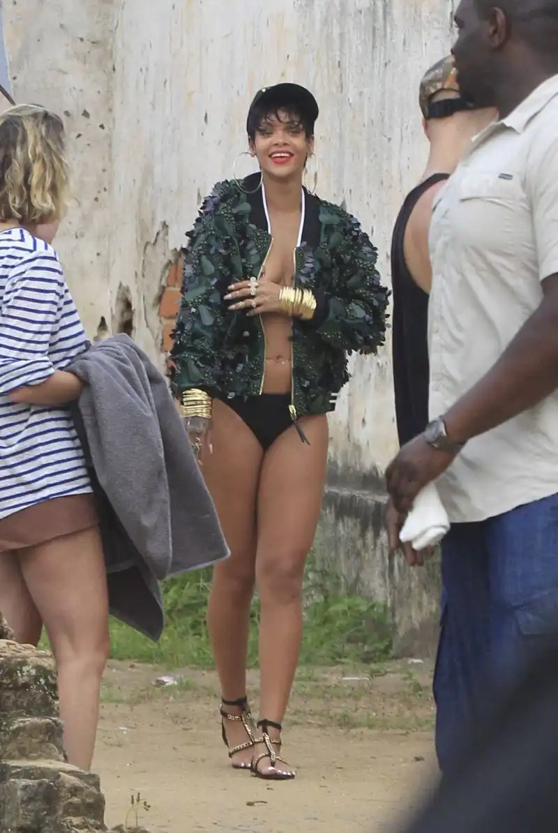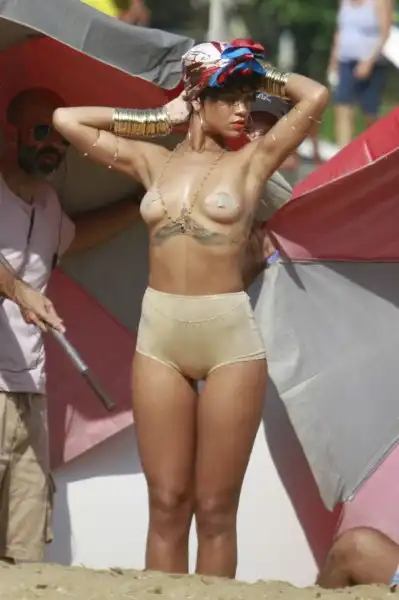Рианна приняла участие в фотосессии для бразильского издания журнала Vogue. Ожидаемо, что фотографы решили поэксплуатировать разнузданный образ певицы и устроить съемку в стиле топлес.