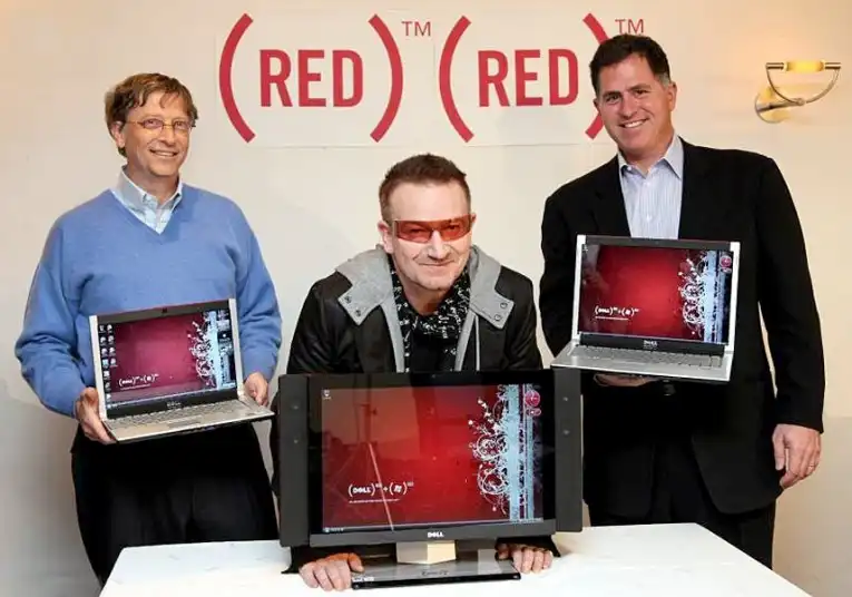 12. В 2008 году Гейтс и Майкл Делл, основатель и председатель Dell, выступили с заявлением на Всемирном экономическом форуме, что Dell и Майкрософт присоединятся к Благотворительности Боно (RED), чтобы помочь бороться со СПИДом в Африке.