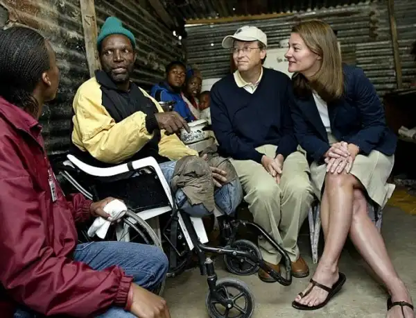9. Гейтс неоднократно был признан самым богатым человеком в мире, но в своем интервью он сказал, что не любит внимания, которое он привлекает, и что он отдал большую часть своего состояния на благотворительность. В настоящее время The Bill & Melinda Gates Foundation – крупнейшая благотворительная организация в мире. На фото: пара разговаривает с жертвой туберкулеза в Кейптауне в 2006 году.