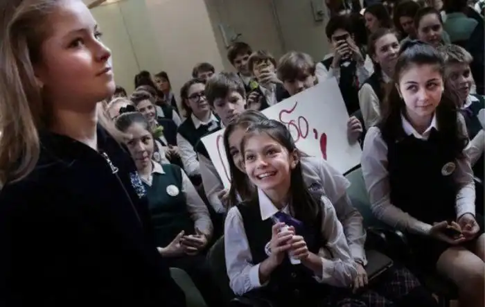 \«Юля мы тебя любим\», \«Юля ты молодец!\», — так приветствовали Юлю московские школьники
