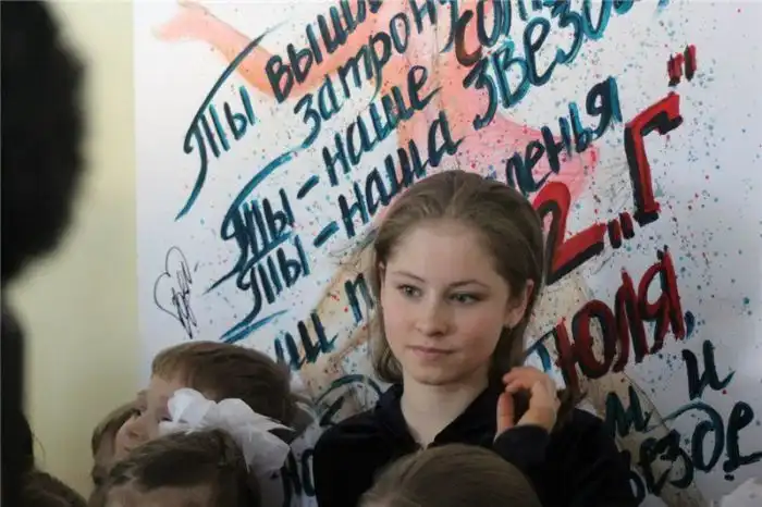 Затем состоялась пресс-конференция, на которой Юля и её тренер Этери Тутберидзе ответили на вопросы школьников и журналистов.