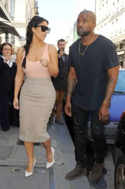 Пара, которая поженится 24 мая в итальянской Флоренции, посетила магазины знаменитых брендов Saint Laurent, Versace, Miu Miu и Balenciaga, откуда они вышли без покупок, однако в бутике Céline Ким, которая для похода по бутикам выбрала серую юбку-карандаш, светлый купальный костюм, надетый вместо топа, и белые туфли Gianvito Rossi, наконец нашла себе вещи по душе — черную юбку за 5600 долларов, юбку в белую и синюю полоску за 2100 долларов и юбку армейского зеленого цвета. Ей также приглянулись солнечные очки за 420 долларов.