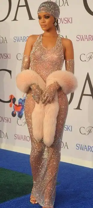 Певица Рианна, которая уже давно считается настоящей иконой моды и стиля, появилась на церемонии вручения наград Совета модных дизайнеров Америки CFDA 2014 в шикарном прозрачном платье от дизайнера Адама Сельмана. Хоть для изготовления этого удивительного наряда потребовалось 216 тысяч кристаллов Сваровски, оно практически не скрывает наготу. Обязательно смотрим далее на Рианну, которая без стеснения продемонстрировала свою фигуру, позируя фотографам.