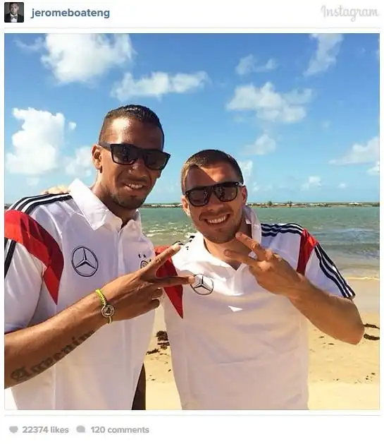 Жером Боатенг и Лукас Подольски, сборная Германии, наслаждаются Бразильским солнцем и пляжем.