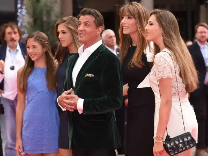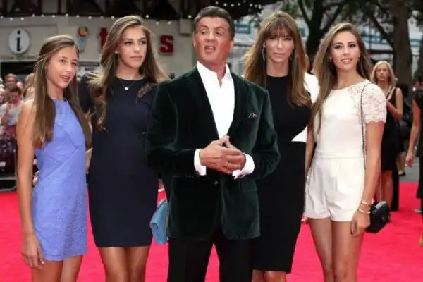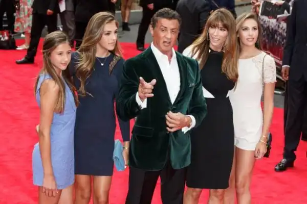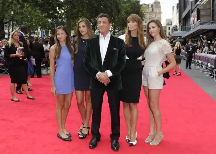 На красную дорожку ветеран боевиков вышел в сопровождении своей очаровательной, третьей по счету официальной супруги, экс-модели Дженнифер Флавин (45) и их троих дочерей — Софии Роуз, которой 27 августа исполнится 18 лет, 16-летней Систин Роуз и 12-летней Скарлетт Роуз. Имена всех детей Сталлоне начинаются на букву «С» — у него есть сын Серджио, а умершего в 2012 году другого сына от первого брака звали Сейдж, все же дочери носят второе имя «Роуз» — по одной версии, в честь цветка, чтобы девочки всегда знали, что они прекрасны. «Когда я даю им советы, они спрашивают, с какой это стати они должны им следовать. В таких случаях я прошу их посмотреть на дом, в котором они живут, вспомнить хорошую школу, в которую они ходят. Все это значит, что я что-то понимаю в жизни, верно? Дочери обычно заявляют, что я все равно ничего не смыслю в современной моде и что я не такой уж забавный, каким себе кажусь. Я не сдаюсь! Ведь в фильмах я герой, их отец — Рокки и Рэмбо! Когда я об этом напоминаю, им становится за меня неловко. В общем, в кино я могу убить кого угодно топором, а в жизни не могу справиться с 10-летней девочкой», — признался актер в интервью журналу ShortList.