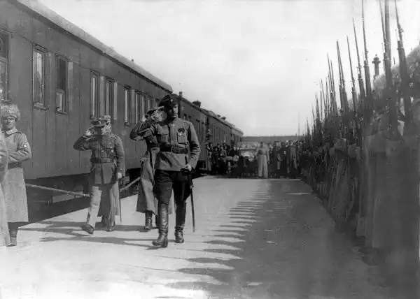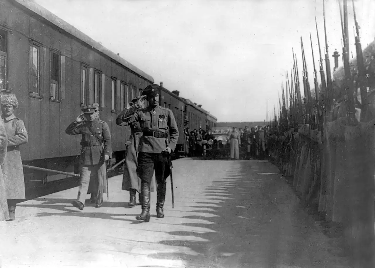 Командующий Сибирской армией Р.Гайда обходит строй Почетного караула. Ст. Екатеринбург-I, 8 мая 1919 г.