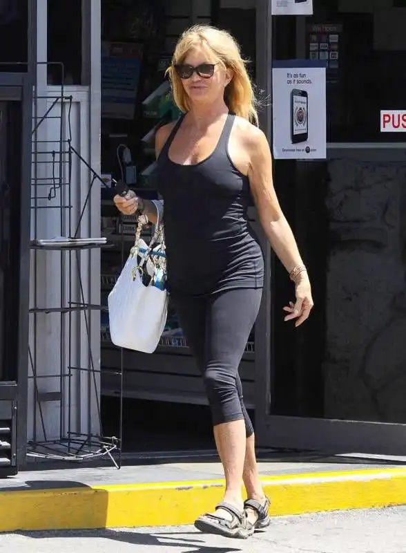 Актриса, одетая в серый спортивный топ и облегающие легинсы, была замечена покидающей дом своего сына в Лос-Анджелесе. Поддерживать бодрое состояние тела ей помогает медитация, которую она практикует с 1970-х, хотя она не считает себя буддисткой: «Я родилась в еврейской семье и считаю иудаизм своей религией, но я изучала все остальные религии и поняла, что по-большому счету все мы молимся одному Богу». Что касается диеты и спорта, то Голди не считает себя фанатиком фитнеса и здорового питания, хотя ее привычки вредными назвать сложно: «Я занимаюсь спортом четыре раза в неделю, езжу на горном велосипеде, хожу на пилатес. И ем много зелени, но я не вегетарианка. Я люблю готовить, например делаю чудесную пасту болоньезе».