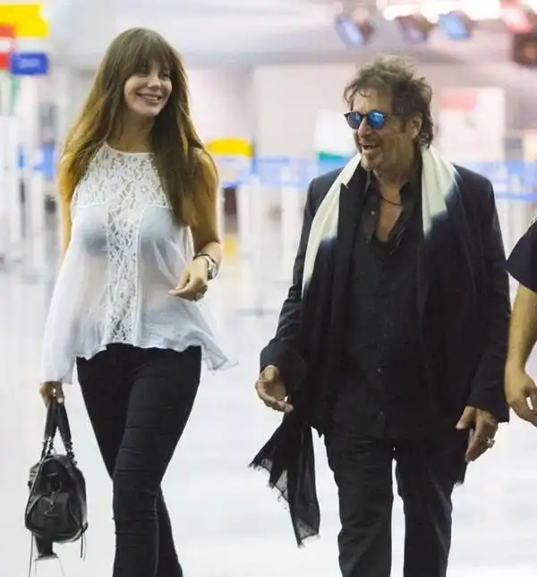 Ему - 74, ей - 35. Аль Пачино и его возлюбленная, аргентинская актриса Лусила Сола. У Пачино и Солы случился служебный роман. Они познакомились на съемочной площадке картины "Дикая Саломея": Лусила там играла одну из ролей, а Пачино был режиссером.