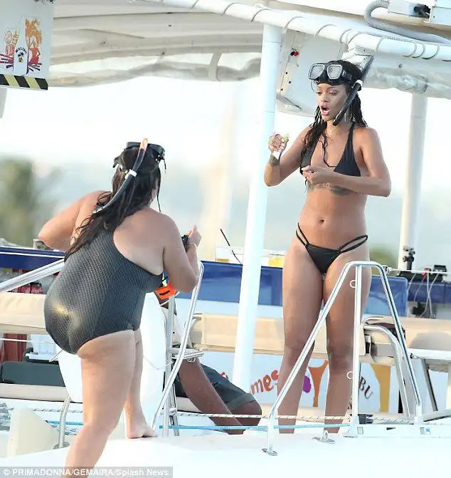 Рианна с друзьями отдыхает на Барбадосе, она ныряла с маской и трубкой, и продемонстрировала безупречную фигуру. Так же она встретилась с родными, проживающими на Барбадосе.