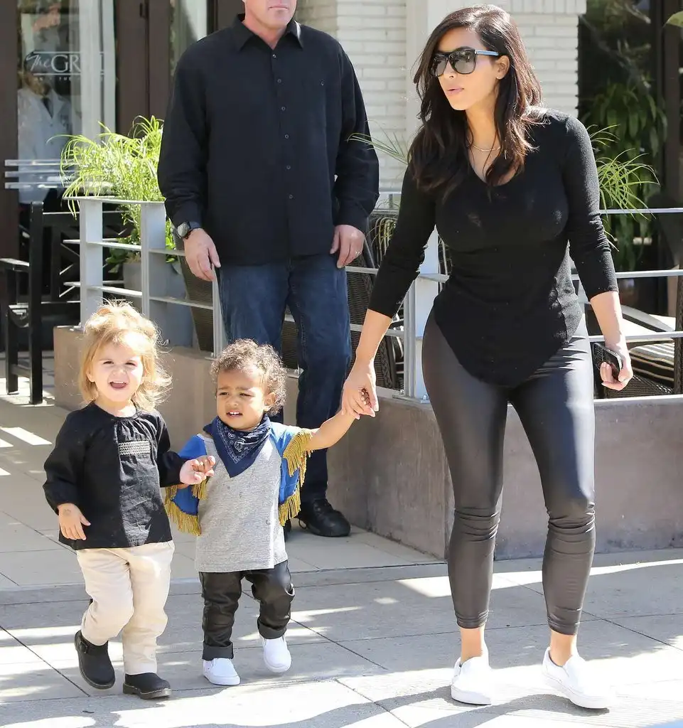 Ким на прогулке с детьми