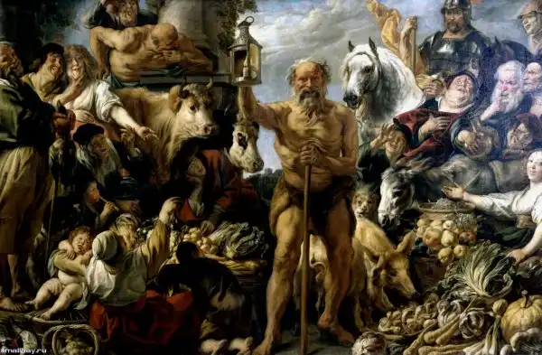 * Однажды, помывшись, Диоген выходил из бани, а навстречу ему шли знакомые, которые только собирались мыться. «Диоген, — спросили они мимоходом, — как там, полно народу?». «Полно», — кивнул Диоген. Тут же ему встретились другие знакомые, которые тоже собирались мыться и тоже поинтересовались: «Привет, Диоген, что, много людей моется?». «Людей — почти никого», — покачал головой Диоген. Возвращаясь как-то раз из Олимпии, на вопрос, много ли там было народу, он ответил: «Народу много, а людей совсем мало». А однажды он вышел на площадь и закричал: «Эй, люди, люди!»; но когда сбежался народ, напустился на него с палкой, приговаривая: «Я звал людей, а не мерзавцев».