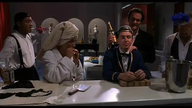 Фильм «Четыре комнаты» (1995 год) состоит из четырех частей, объединенных местом действия и главным героем, отснятых четырьмя режиссерами — Эллисон Андерс, Александром Рокуэллом, Робертом Родригесом и Квентином Тарантино. Критики и зрители встретили фильм прохладно, хотя рецензенты положительно отметили именно новеллу, снятую Квентином
