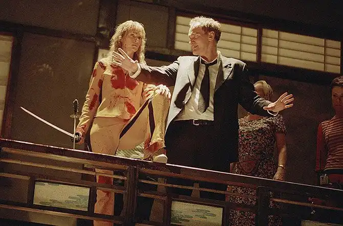 Картина «Убить Билла. Фильм 1» (2003 год) — сильно стилизованный кровавый боевик, снятый по сценарию, разработанному Тарантино вместе с актрисой Умой Турман