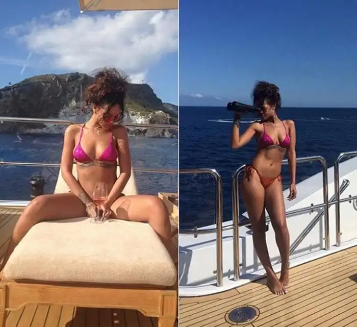 Оскароносная Люпита Нионго постаралась и на пляже выглядеть гламурно: соломенная шляпа, цепочка на талии