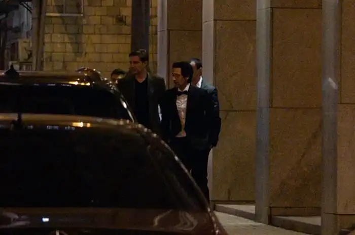 В московском кинотеатре «Октябрь» прошла премьера нового голливудского блокбастера «Ограбление по-американски». Отечественному зрителю киноленту представляли режиссер Сарик Андреасян и исполнитель главной роли Эдриан Броуди. 41-летний актер без своей подруги Лары Лиеты прилетел в столицу на частном самолете и, чтобы не стоять в пробках, был доставлен в отель «Шератон» на машине ДПС. В своем номере Броуди 2 часа примерял смокинг и потому опоздал на начало премьеры.