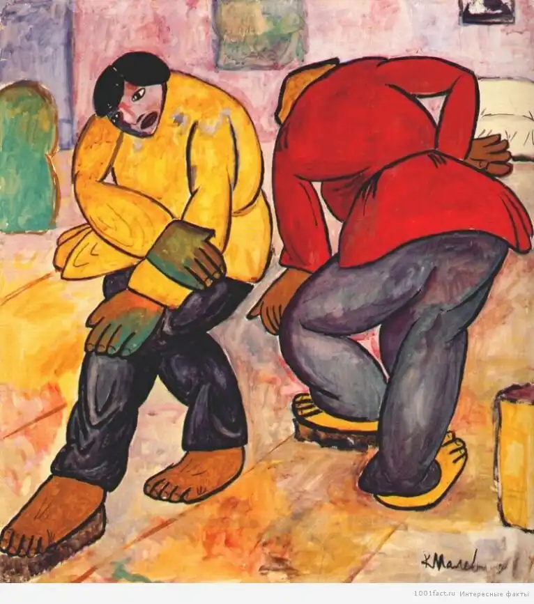 Каземир Малевич входил в группу молодых неопримитивистов Ослиный хвост и участвовал во многих эпатажных акциях.
