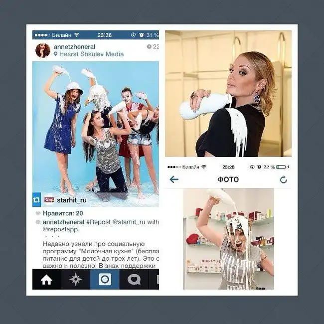 Некоторые звезды отечественного шоу-бизнеса приняли участие в новой акции под названием «всемирная эстафета Ice Kefir Challenge». В стремлении обратить внимание общественности к социальному проекту «Молочная кухня», подразумевающему введение бесплатного питания для детей в возрасте до 3-х лет, российские знаменитости облились кефиром. Этот процесс необходимо сфотографировать, выложить снимок в сеть и назвать имена троих следующих участников. В настоящий момент флешмоб лишь набирает обороты, и в нем пока успели поучаствовать не более 10 человек. Флешмоб Ice Kefir Challenge привлек певца Алексея Воробьёва, артистку Елену Воробей, балерину Анастасию Волочкову, актрису Анастасию Денисову и девушек из журнала «СтарХит».