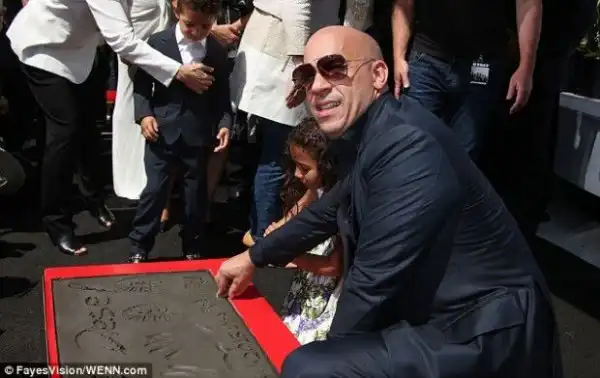Кроме семьи — возлюбленной Паломы Хименес, дочери Хании и сына Винсента, поддержать Дизеля прибыли также его коллеги по гоночной франшизе «Форсаж» Мишель Родригес, Джордана Брюстер, Лудакрис и другие. Кстати, несмотря на то, что церемония состоялась 1 апреля, это вовсе не шутка. Отныне на Аллее славы действительно можно найти отпечатки рук и ног знаменитого Вина Дизеля.