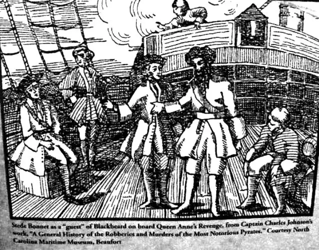 В марте произошла историческая встреча Стида Бонне с непререкаемым боссом пиратского мира Эдвардом «Черной Бородой» Тичем. Черная Борода мог позволить себе диктовать условия: по сравнению со здоровенной «Местью Королевы Анны», имевшей 40 пушек, «Месть» Стида Бонне выглядела чуть ли не скорлупкой. Итог встречи двух корсаров показателен: Стид Бонне, уже успевший сжиться с ролью пиратского капитана, вмиг лишился своего любимого корабля; Эдвард Тич назначил своего человека (Робертса) управлять его кораблем.
