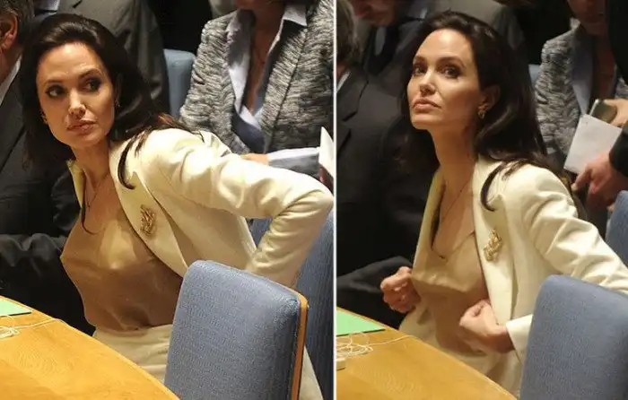 Известная американская актриса Анджелина Джоли, являющаяся послом доброй воли ООН, на недавнем заседании жестко высказалась в отношении вопроса урегулирования сирийского конфликта. Она потребовала от ООН реальных действий, которые помогут, наконец, прекратить кровопролитие. Посол Сирии после ее выступления произнес следующие слова: «Она прекрасна!». К чему именно относится эта фраза неизвестно, ведь ей можно было охарактеризовать и внешний вид 39-летней женщины, контуры груди которой отчетливо прорисовывались сквозь легкий шелковый топ, надетый без бюстгальтера.